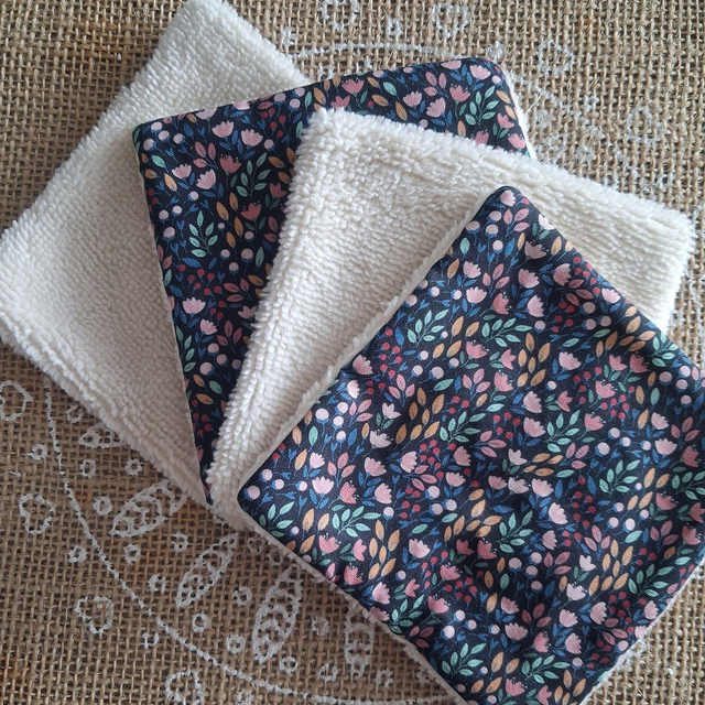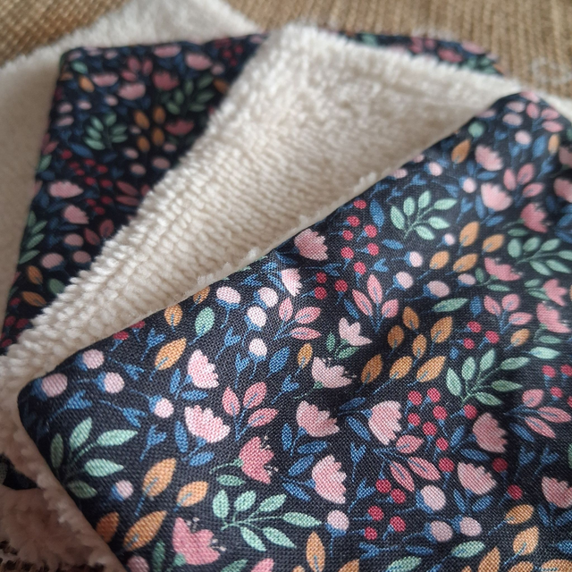 Cotons lavables en coton imprimé et éponge bambou.